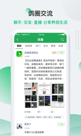 以论坛形式对赛鸽爱好的爱好的俱乐部建立一个专属社交圈。