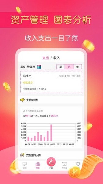 【图表展示】更直观呈现每日收支变化,及时调整自己的花销习惯。