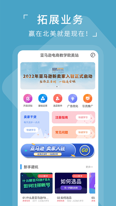 亚马逊电商教学欧美站是杭州市博世网络技术有限公司推出的一款手机端电商直播软件,该软件为用户提供最全面的电商课程以及海量精品教程供用户学习观看。在这款app里,你可以随时随地查看到亚马尼斯的运营情况和实时更新的数据趋势图等信息内容;在这里你还可以了解最新的行业动态资讯、商品推荐与推广策略等等服务项目!如果你想要成为一名电商达人的话,那就赶紧来下载试试吧。