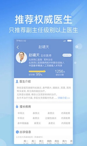 北京医院挂号网APP是一款提供便捷就医服务的手机应用程序,为用户提供方便快捷的一站式医疗健康咨询和查询功能。这款软件拥有强大的疾病数据库系统,可快速准确地识别出病情情况,并根据患者的疾病需求智能推荐最适合的医生给到患者治疗意见,让患者享受更贴心的服务。