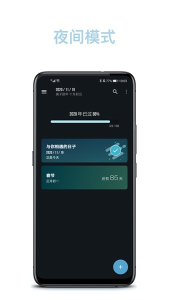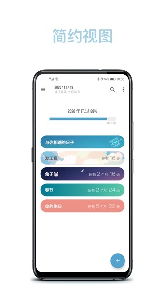 纪念日列表:可自由创建多个纪念日清单并查看过去7天的到来时间,方便快捷