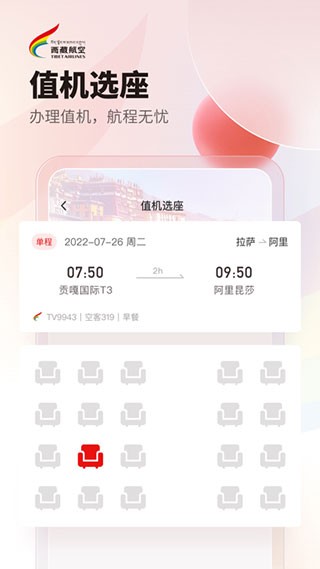 西藏航空app是由北京中航官方推出的手机客户端,这款软件为各位用户提供手机办理登机手续的服务功能,同时还有非常便捷的一键查询航班信息、值机选座等一系列的功能服务!