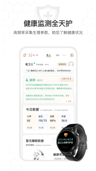 提供全面的血压、心电、脉搏、血氧、温度等多项健康指标的数据分析;