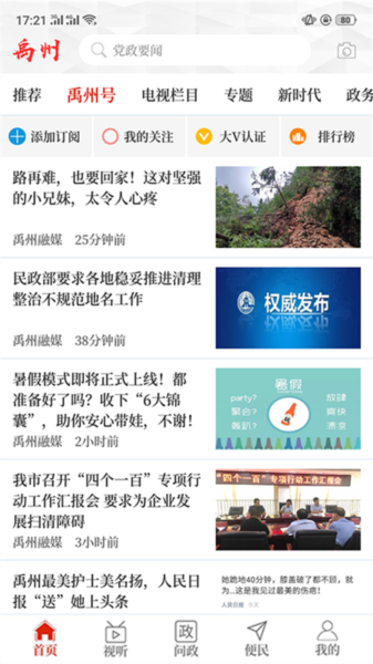 云上禹州本地人都在用的新闻资讯app,这里有最新的本地的最新资讯。无论是热点还是国内大事都能第一时间了解。同时还能在首页进行点播视频看直播哦,还可以直接关注感兴趣的频道和号源来查看更新情况等!