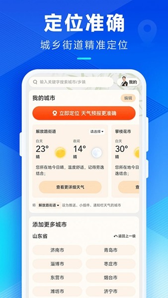希望天气app是一款手机天气预报软件,软件中用户可以查看未来一周的天气数据详情信息内容,海量的功能免费使用体验。一键即可定位城市位置以及添加其他地区的天气情况等操作!对软件感兴趣的话不妨点击下载试试吧~