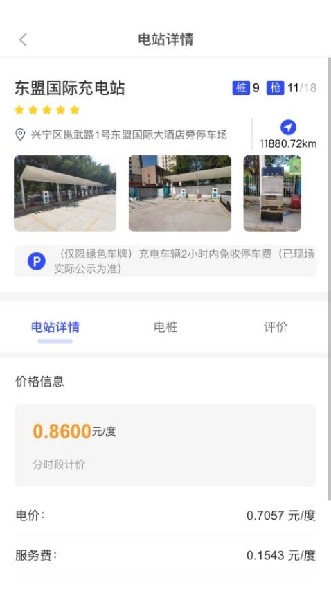 自动显示最近充电桩位置信息与详情地址(包括充电桩名称及详细地址);