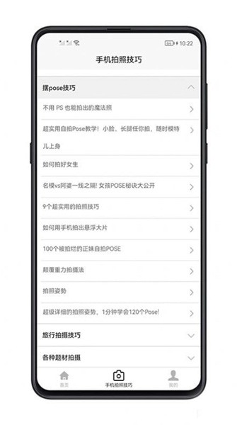 手机拍照技巧是摄影学习软件,能够让你在拍照的时候学会如何使用相机拍摄照片哦,而且手机拍照技巧也是非常实用的,喜欢拍照的朋友们不要错过了哦,快来绿色资源网下载吧!