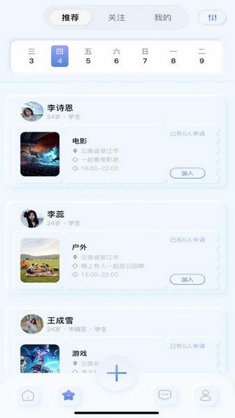 【附近的人】根据你的喜好查找附近的人,寻找与自己有相同兴趣的人。