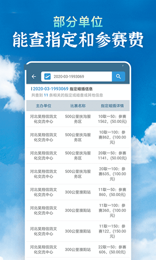 4、赛鸽赛鸽资料检索:信鸽足环号网查信息手机版一键获取全国公务鸽参赛信息全面权威;