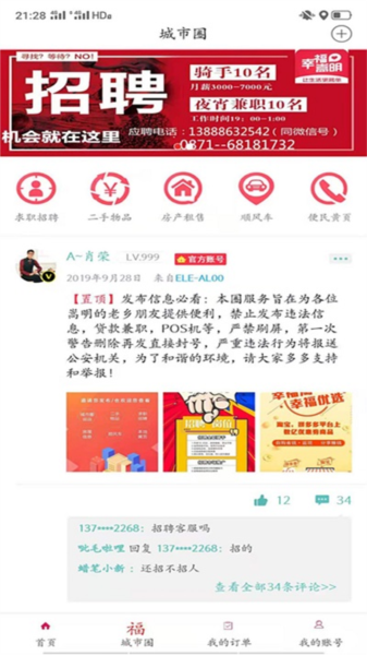 幸福牡明app是一款非常优质的生活服务平台,软件为用户提供便民生活、同城跑腿等功能。在软件中你可以随时随地发布各种需求信息并找到自己需要的美食菜谱或商品资源等等!有需要的用户快来下载吧!