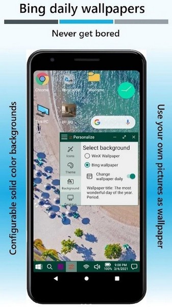 7、【隐藏应用】在桌面的底部提供许多个性化的选项,例如颜色调整、主题选择和壁纸制作等;
