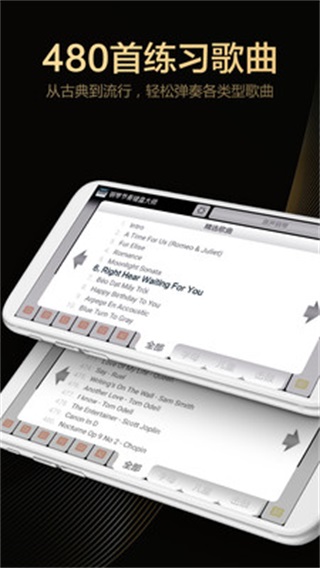钢琴大师不仅包含常见的八大曲目,还包括古典钢筝、流行金句等经典曲目及其经典钢琴曲目所指的演奏范例。