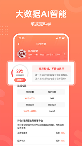 1.【智能推荐】根据历年分数线以及位次,推荐录取率高的学校;