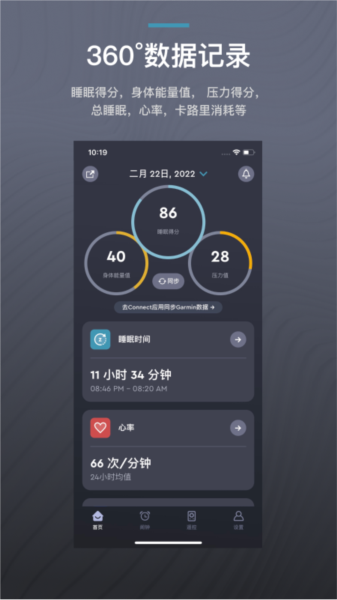 ●记录每日的活动、睡眠、体重、血压、心电、电池状态、温度、压力、肌肉水平以及更多相关指标。