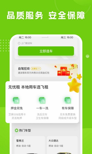 飞租出行app是专为出行而打造的,使用其能够快捷进行租车操作。便捷好用;软件中支持手机支付功能给用户带来极大方便的生活体验。需要的用户赶紧看看吧!