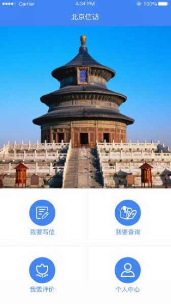 “北京信访app”,安装完成后打开进入该页面,按照提示填写相应的信息即可申请成为信访机构。