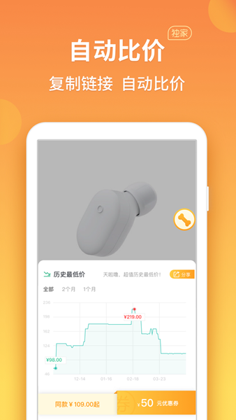复制商品链接就可以获得商品的比价结果,随时了解商品降价情况。
