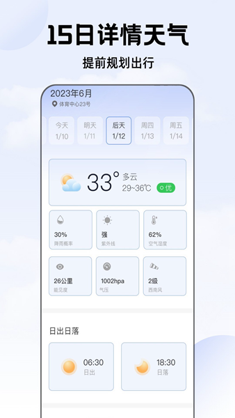 听雨天气是一款天气预报app,可以帮助用户了解未来24小时天气情况以及风力,支持多种不同的场景预报功能。软件界面简洁清晰,使用方便易懂,让你随时掌握天气变化情况。还等什么,赶紧下载体验吧!