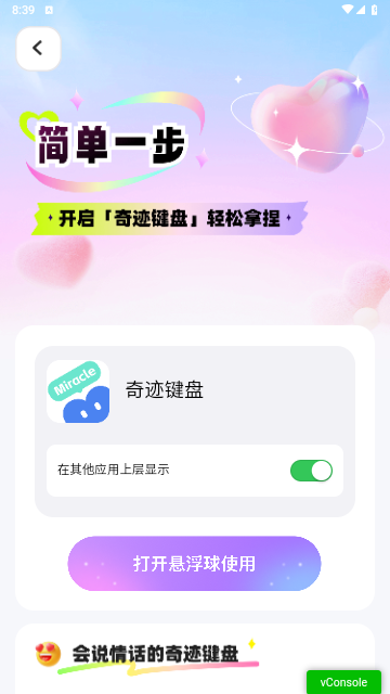 奇迹键盘不仅是一款实用的应用程序,更是您生活的得力的助手,助力您在交流中享受更多的乐趣。