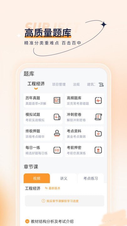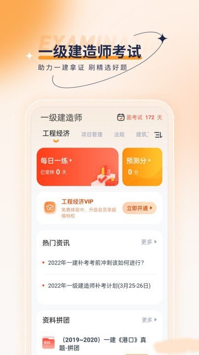 一建、二建、造价工程师、注册工程师、监理工程师、安全咨询工程师(含二级建造师)、中级经济师、注册电气工程师(注安)考试题库APP,专注建造师考试刷题、听课两大需求;专为备考一级建造师考试的考生设计,涵盖了一级建造师、二建、消防工程师、房地产经纪人、招标代理人员、消防技术资格考试等。