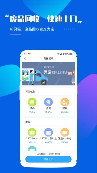 作为一款为全国范围内所有回收人员量身打造的应用软件,灵猫致力于通过整合传统废物资源及环保业务模式,为社会公众提供高效、快捷、准确且全面的废材回收解决方案,通过创新的互联网+回收模式,实现从“废厂”到\"废人”,再到“企业”,全链条式服务,以“降低成本”、提高效率的方式,为全国各地有需求的用户提供高质量的废品回收和服务。通过灵猫app,用户不仅可以方便地查询废弃物品分类情况,还能享受专业人士提供的上门回收服务。