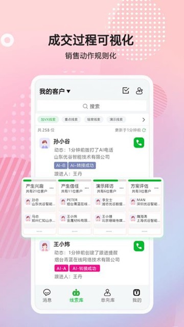 优峰智能SCRM是专为销售管理而设计的专业工具app,功能齐全强大实用性强,让您轻松办公更加顺利高效。