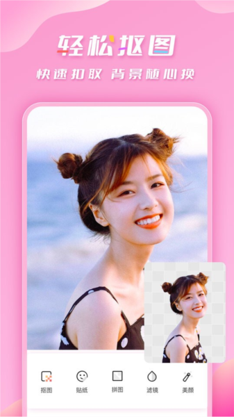 照片抠图软件免费版是专门为广大用户打造的一款手机在线图片处理工具,该软件可以将手机上多张照片进行合成操作。有了它就可以轻松实现图片一键快速去除,还支持自定义背景、边框和文字等功能哦!快来绿色资源网下载使用吧!