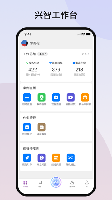 兴智工作台app是一款由江西爱美创科技有限公司推出的手机办公软件,为各位用户提供非常便捷好用的在线沟通交流服务功能。在这款软件中可以帮助老师们快速管理班级学生信息、查看考试成绩等各种内容!有需要的用户赶快来下载使用吧。