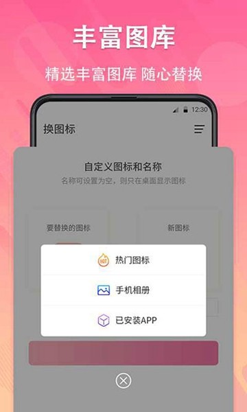 2、丰富样式:提供超过10000+的图标包素材库可自由搭配组合添加到桌面中让每个屏幕都独具个性;