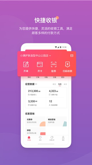 客满满可帮助店铺管理入口版是一款专门为商户提供线上经营的app,在这里可以实时查看到最新的门店数据情况。能够快速进行订单、会员信息查询等操作!软件功能强大,使用简单方便!需要的用户快来下载吧。