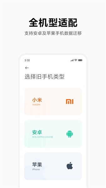 小米换机是款非常简单的数据迁移工具,通过开启之后用户们可以快速将旧手机里的所有文件进行传输。软件方便的功能和超多选择也是适合我们使用的朋友们去体验,喜欢的朋友不妨速速下载吧