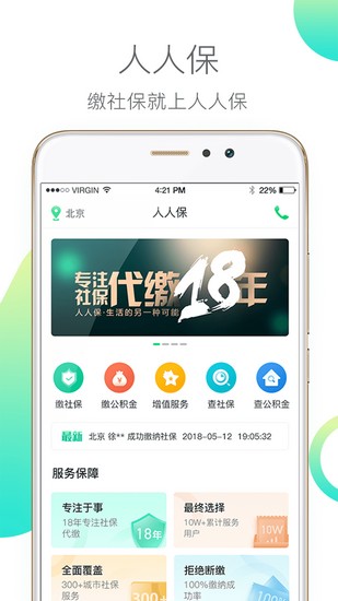 人人保是国家人事和人力资源服务部为广大参保人员推出的一款手机保险代理应用,由中国人民银行股份有限公司倾力打造而成。该软件功能强大,提供社保、养老保险、医疗保险等险种查询及缴费信息咨询与办理操作;用户可以随时随地在线进行认证申请以及查看详细个人账户详情介绍!同时它还支持代办年审、代交社保、代出保单等多项业务内容处理模式使用哦,让你轻松享受一站式智能人脸识别系统带来的便利生活方式!