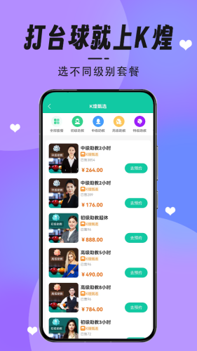 T煌台球满足您的台球求教平台是一个针对台球的在线学习教育平台,平台为学生提供了丰富的题库内容和教学资源。学生可以通过K翰台球尽情享受台球的乐趣!快来下载体验吧!