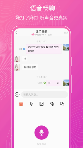意聊交友软件是一款手机聊天社交应用,为用户提供一个轻松、安全的线上交流平台。它提供了多种功能和特色服务,包括语音通话、视频互动、文字消息等等,让用户可以与陌生人进行实时沟通;而这些功能则非常实用,例如动态分享、在线聊天等,能够更好地满足用户的各种需求;另外,意聊交友软件还具备了智能推荐系统,根据用户的兴趣爱好自动筛选出符合口味的用户并发送给用户以便于他们在同城中找到合适的人