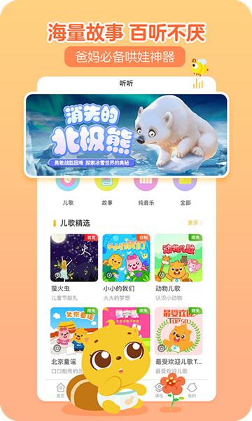 汇聚各类精品原创儿童故事,包括安全常识故事、睡前哄眠儿歌、伊索预设等,陪伴孩子健康成长。