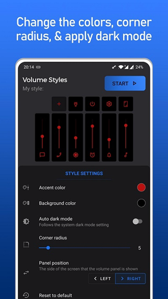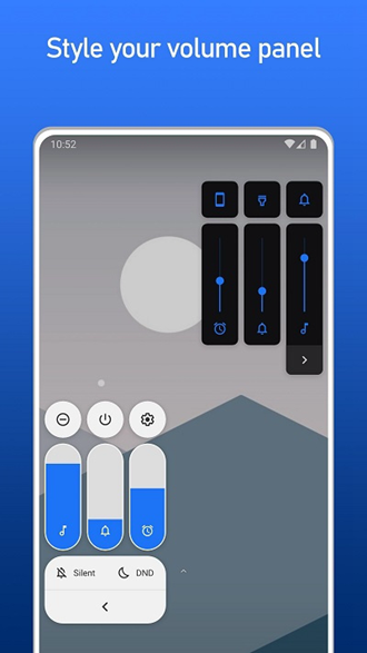 Styles可以对你的安卓手机的音量面板进行美化 勿扰音量面板调节美化器是一个非常好用的手机音效调整工具,可以帮助你将一些比较常用的声音设置成各种样式和音效的样式。同时这里还有许多个性化的定制功能哦,让你在使用的时候能够更加的方便快捷!软件中用户可以通过选择不同的音频模式来进行自定义操作,如混响、均衡器等多种参数设定供用户随意修改。