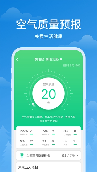 全面的数据覆盖:应用涵盖了广泛的天气状况及生活指数资源,如温度、湿度、空气质量等。