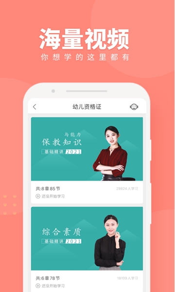 幼儿教师资格证:全面涵盖了全国各地区的所有幼儿、早起打卡班级,还有国家权威老师精心录制了一系列免费直播公开课,让你足不出户享受优质学习服务。