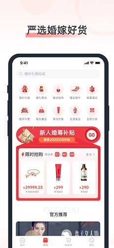 “结婚”就选一个好婚恋app,“婚嫁”就要选择一个好礼——新人礼包:注册送豪车、免费洗鞋和大牌化妆品;