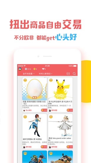 手办、玩具、化妆品等周边任君选,超值扭蛋等着你的加入。