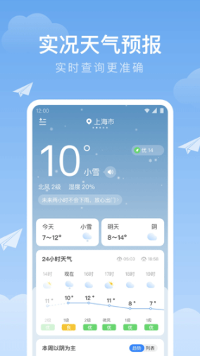 时晴天气预报app是一款手机桌面插件应用,可查询未来40天的实时天气预报和未来十五天天气预报数据;支持国内3万个城市及地区精准预报;提供穿衣、紫外线、感冒易发程度等生活指数信息以及语音播报提醒服务。