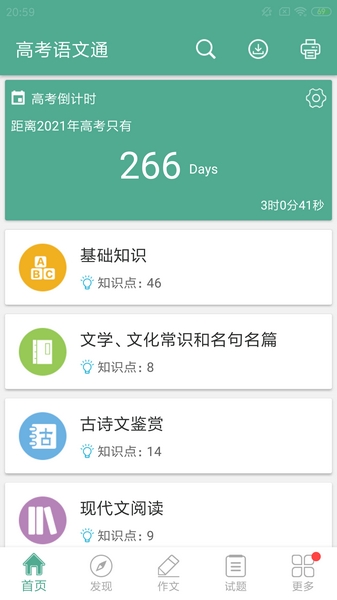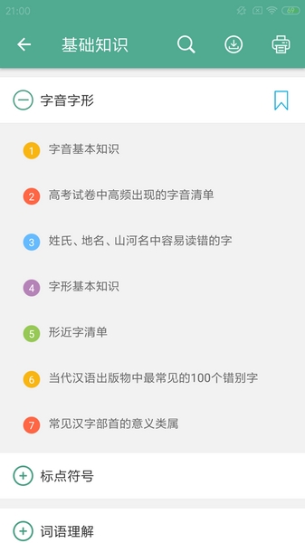 高考语文通app涵盖了初中生所有的基础知识要点,其中包括基础词汇、思想品德、生活礼仪、文学艺术、现代诗歌等几个大的类别,满足考生的不同需求。