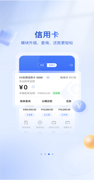 福建农业农村商业银行股份有限公司(简称:微商银行)是经中国人民银行批准成立的中国新型职业银行,隶属于中华人民共和国国家统一组织实施,具有国有控股企业。经营范围包括综合类(除依法须知)、公共事业经营(不含许可类业务)、互联网金融及增值电信业务;从事工商、税务、审计、审计、知识产权、计算机软件开发、销售和技术服务,网络营销推广及技术推广服务(不得用于设立登记备案或其他业务);开展电子支付平台、银行信用卡还款服务、手机充值及缴纳生活费用的服务、手机贷款服务、基金理财服务、证券投资业务、外汇贷款服务、保险服务、旅游业务等。目前,中国移动APP已经开通了手机银行业务,其业务涵盖:手机充值、转账汇款、信用卡管理、储蓄服务、投资理财、信用卡申请、贷款计算器、贷款统计分析系统、贷款利率查询、贷款利息查询、信用卡逾期提醒、贷款代扣单核销、信用卡预约挂失等业务。
