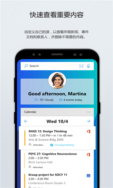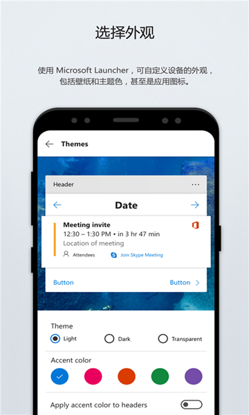 Launcher) 微软桌面app是一款由Microsoft推出的手机桌面美化软件,用户们可以通过这款软件将自己的安卓手机变成你的专属个性化主题壁纸。该软件可以让用户在手机上进行各种自定义设置使用,包括颜色、字体、图标大小、背景等内容和风格等等信息的内容来帮助自己更好的体验到桌面带来的乐趣,从而提升手机的使用感受。另外它还拥有丰富的主题资源提供给用户免费下载试用选择哦。