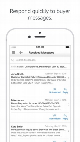 Seller)是电商平台亚马逊为中国卖家准备的手机客户端 亚马逊卖家app是全球知名电商卖家的首选平台,作为中国最大的网购电商平台之一,在网上购物非常方便,你可以在这里浏览到最新的商品资讯和各种店铺优惠信息。亚马斯官方推出的亚马克兰卖出应用程序,让用户可以轻松管理个人店铺并享受便捷高效的生活体验。