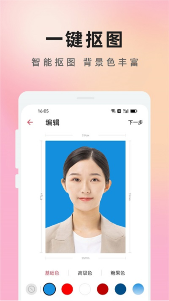 4、“一站式的证件照”线上平台为你打造一个超级优质的证件照库全面详细的信息显示呈现出来给你看。