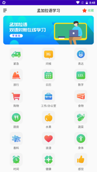 孟加上加拉语言学习是件实用的韩加尔汉语言学习辅助app,能够在线查看相关的教学资源信息以及翻译知识点哦!有需要就来下载使用吧!