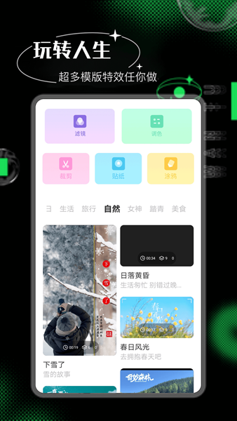 天天玩图秀app是一款功能强大、操作简单的图片编辑工具,它提供了多种强大的图片处理和特效滤镜。使用这款软件你可以轻松地对照片进行美化调整,如裁剪、旋转、滤波器等参数设定,让你的图片更加出彩。同时,该软件还提供了丰富的贴纸素材资源供用户选择!