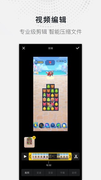 剪辑:你可以对录制好的视频进行裁剪拼接合并处理分割倒放等丰富的特效效果供你挑选观看欣赏;