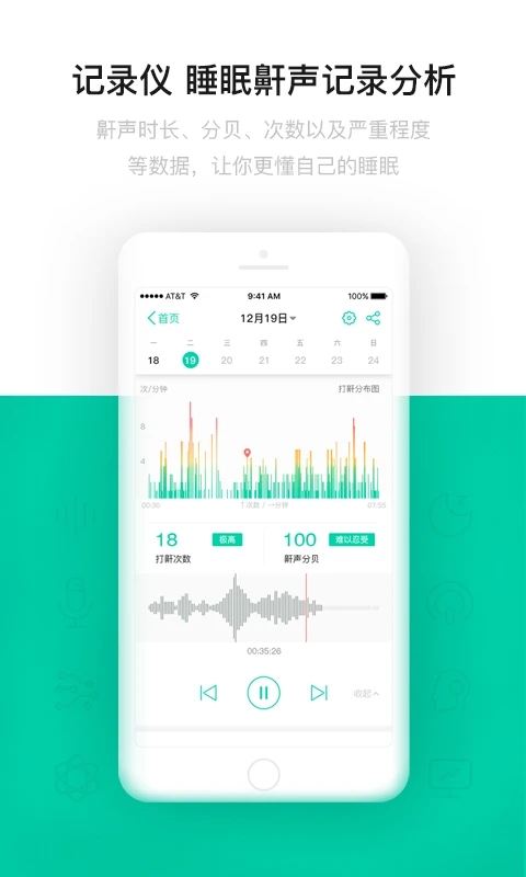 3、多维度睡眠报告与分析:不仅限于睡眠监测,它还具备睡眠分析和趋势分析功能,可通过图表形式展现用户的睡眠质量变化趋势,包括浅眠、深醒和清晨的时间、深度睡眠时长和分贝值等参数,全面跟踪用户健康状况。
